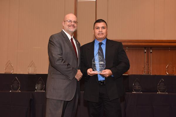 Lawrence Doria, ISPA Chairman | Elizabeth Hroma accepting on behalf of District Chief Donald Hroma, Chicago Fire Department |  Commissioner Jose Santiago, CFD